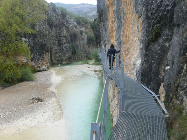 19/3/2014. han caído piedras con las ultimas lluvias y la pasarela a la altura de la presa está rota. se puede pasar con dificultad. comentan en alquezar que estará reparada para semana santa. no vendría mal que hicierais una llamada antes. por lo demás todo igual de bonito. os lo recomiendo. un saludo